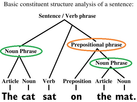 - A prepositional phrase is compound by: a preposition + noun phrase.